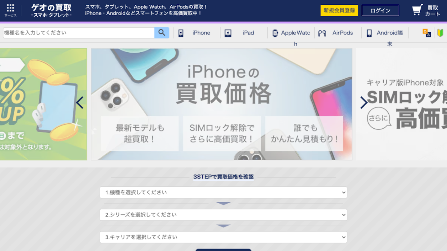 DVDやCDのレンタル事業で有名なゲオでは「ゲオの買取」というApple製品の買取サービスも展開しています。