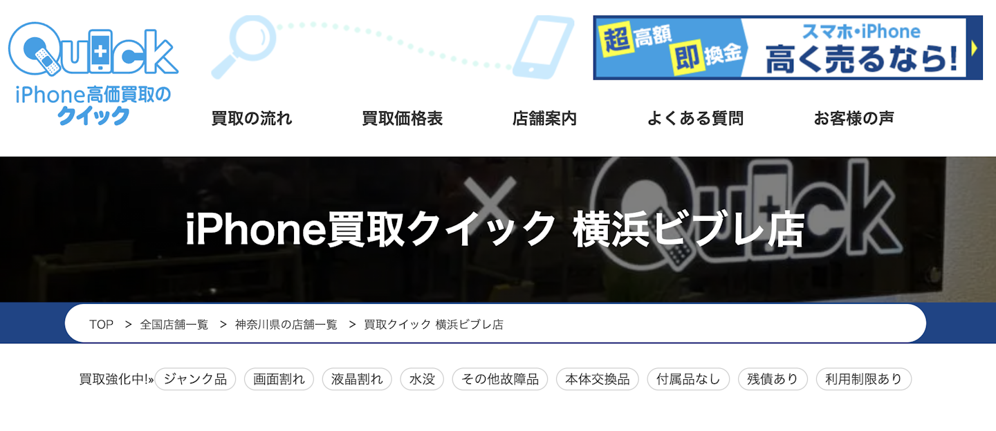 おすすめ3:iPhone買取のクイック 横浜ビブレ店