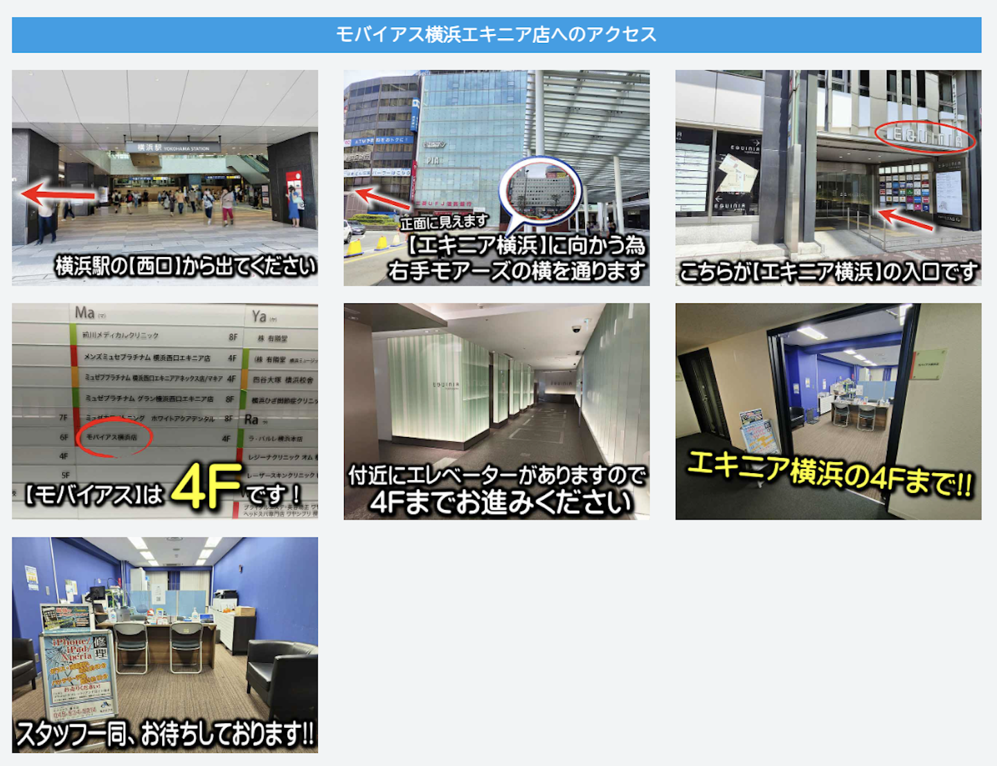 ▼モバイアス 横浜エキニア店へのアクセス