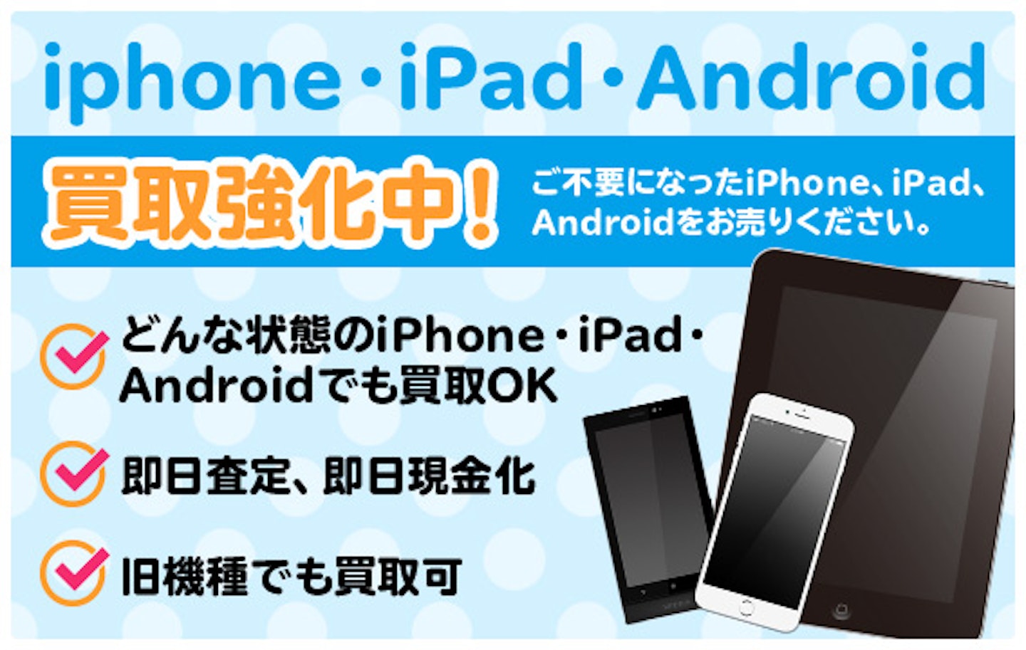 モバイアス 横浜エイニア店は、どのような状態のiPhoneでも、古い機種のiPhoneでも、さらには、Androidでも全て買取可能です。また、事前にWeb予約をすることで、並ばずに買取査定ができると好評です。