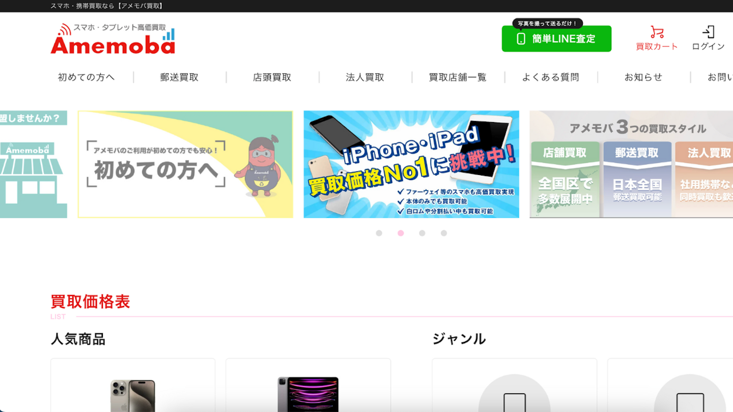 アメモバは北海道から沖縄までの日本全国にiPhone買取店を出店しています。買取方法も「店舗買取」「郵送買取」「法人買取」の3種類から選べます。