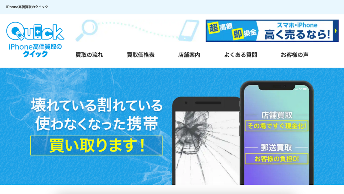 携帯白ロム高価買取のQuick(クイック)は、北海道から沖縄までに多店舗展開をするiPhone買取店です。宅配買取にも対応しています。