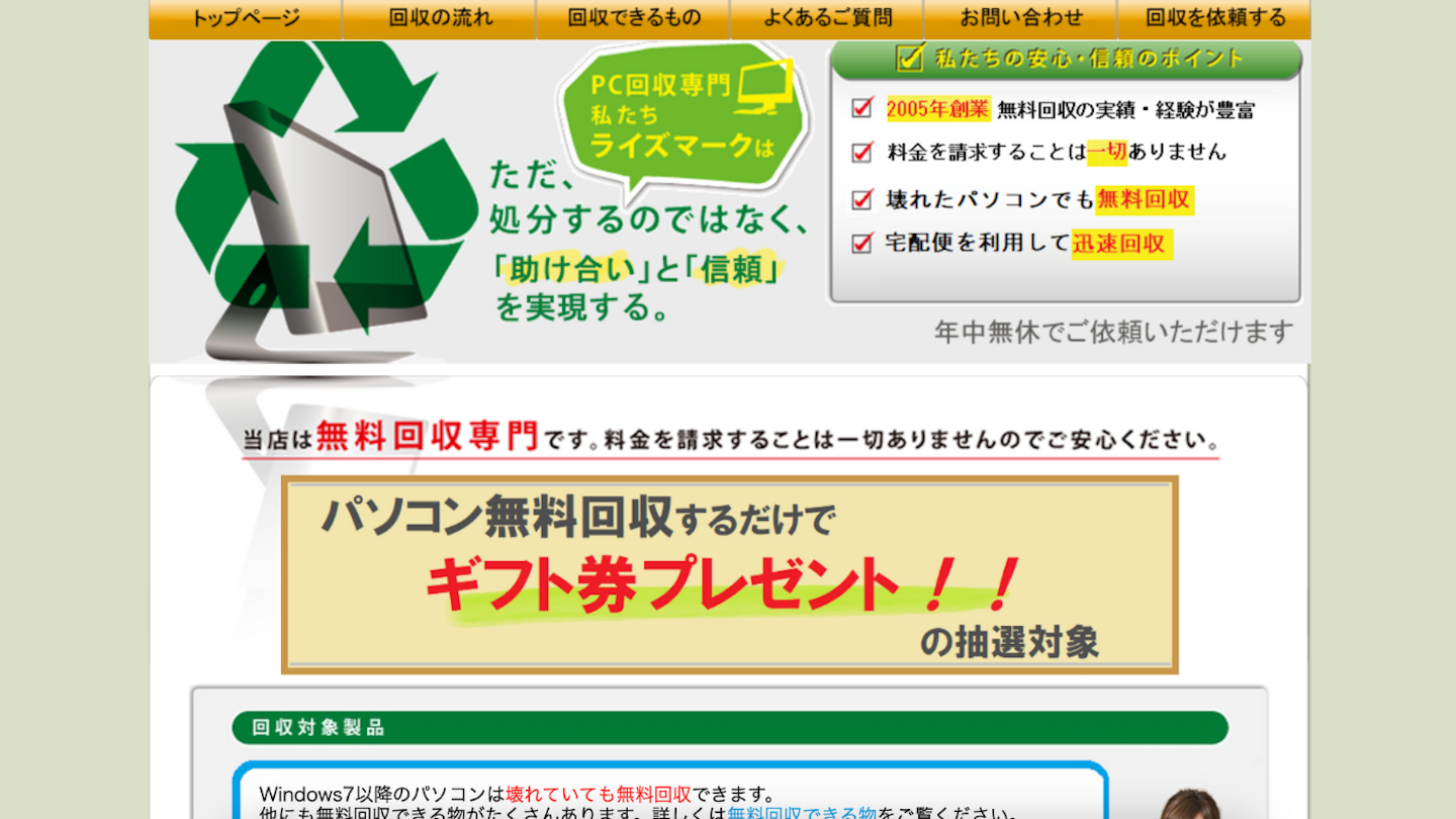 ライズマークは、ノートパソコンやデスクトップPC、PC周辺機器の買取を行う業者で、iPhoneの買取にも対応しています。
