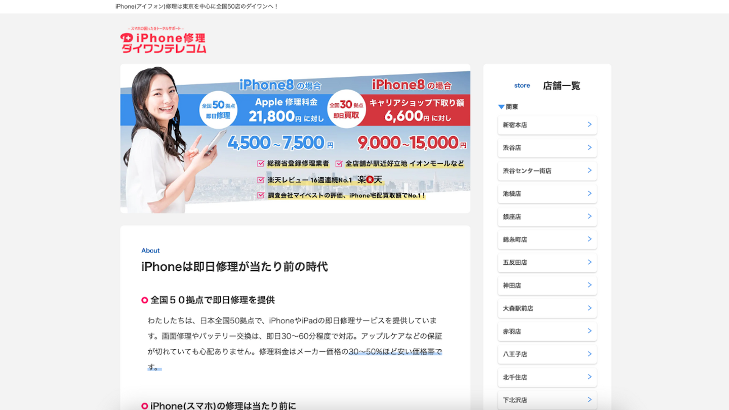 ダイワンテレコムは、日本全国に50店舗を構えるiPhone買取店で、多くの店舗でiPhoneの修理店も併設しています。iPhoneの修理にも対応していることもあり、壊れたiPhoneでも買取してもらえます。
